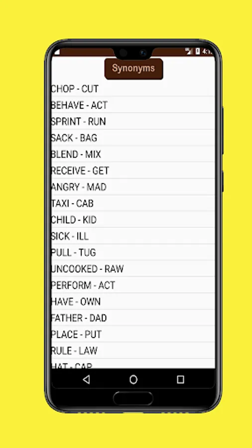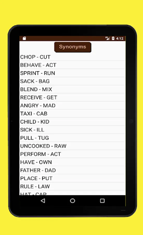 This application contains more than 890 words which are paired with their Opposite, Synonyms, Homophones and Irregular words so total more than 1780 words.