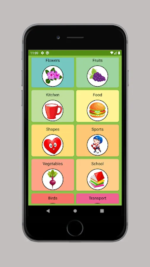 This application can help to improve the word vocabulary and helps them to understand common words. They can learn words by looking at pictures. It has many pictures like animals, sports, fruits, shapes and colors.