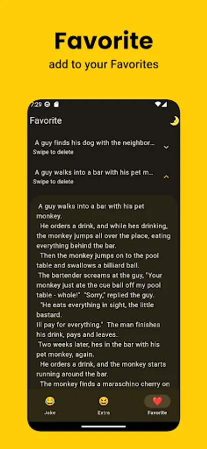 Never lose your favorite jokes again and share them with friends for a guaranteed good time.