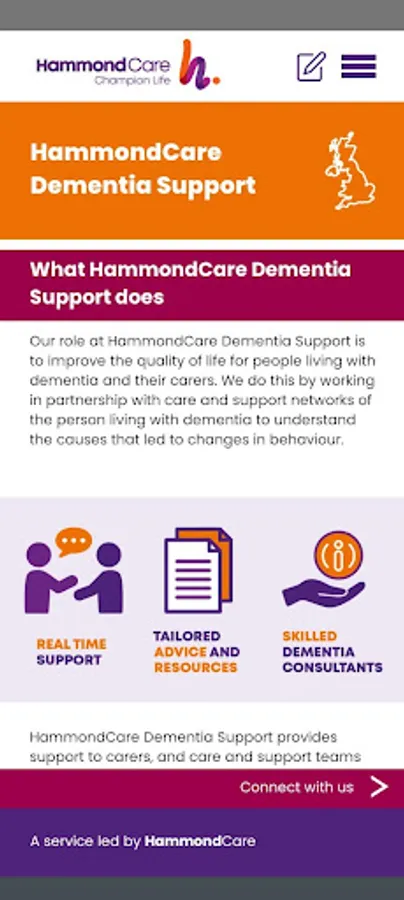 HammondCare Dementia Support is a dementia consultancy service which supports carers, and care and support teams, who work with people with dementia. The free Dementia Support app is your go-to source for real time support and practical resources to help you consider some of the causes of changing behaviour, and quick tips to respond to a range of situations.
