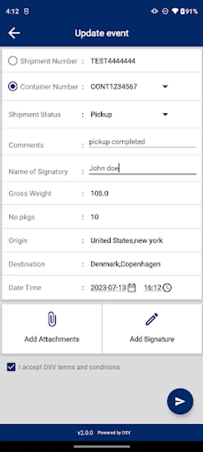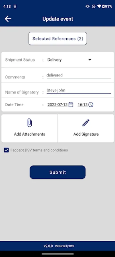 This app is used by drivers to register events. The events are pickup and delivery events used to update the DSV Track and Trace systems.