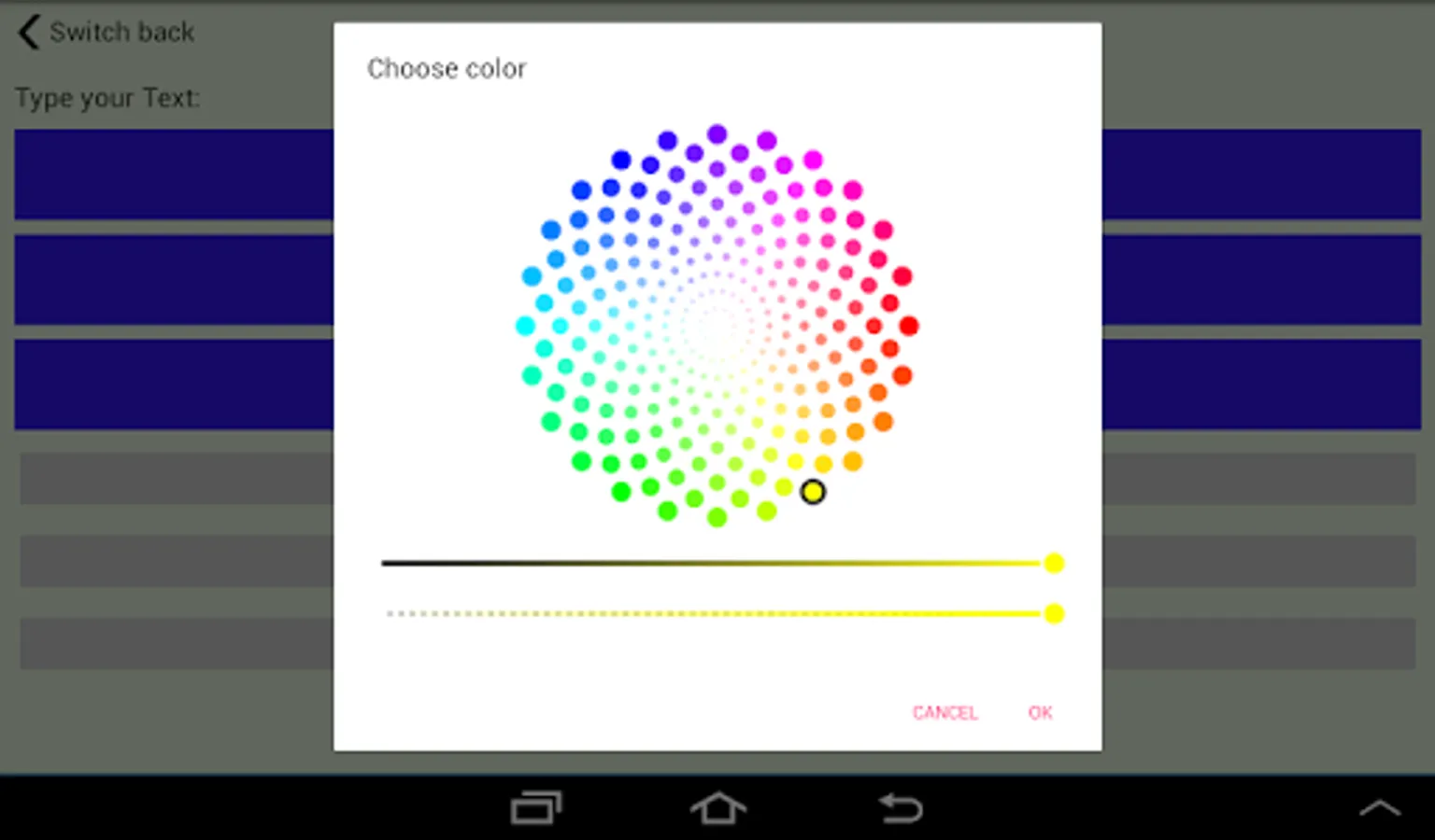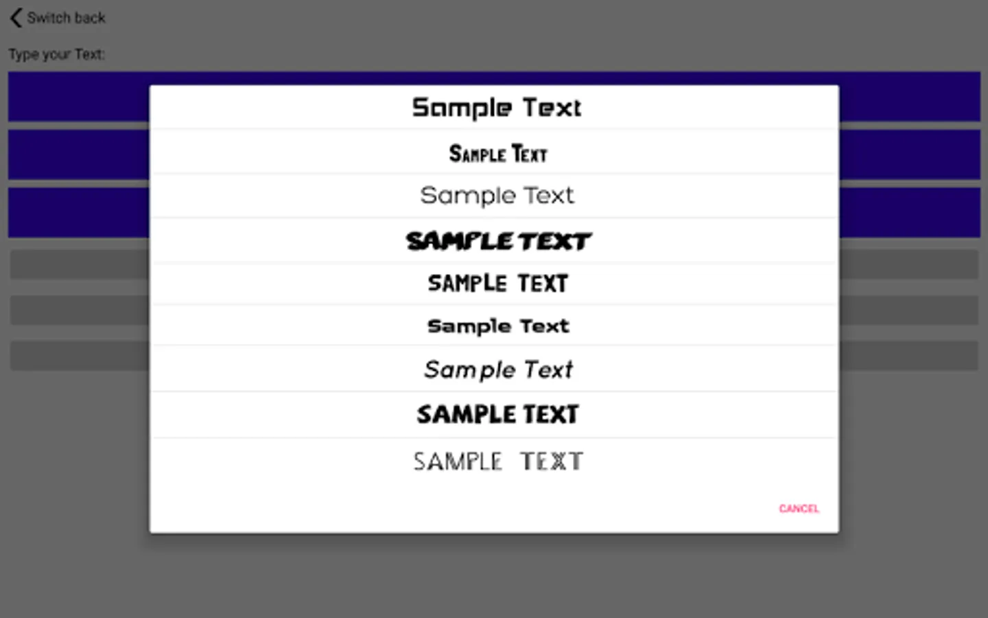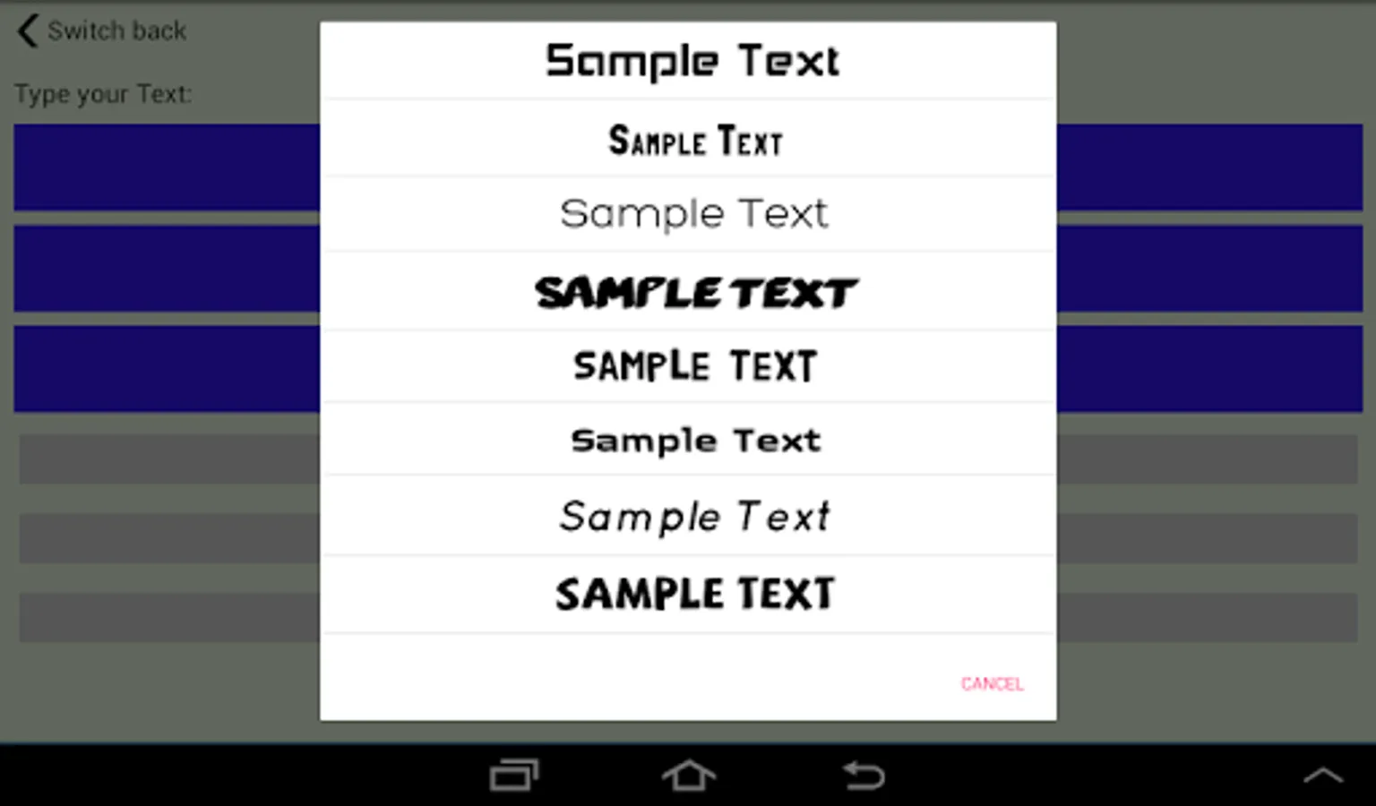 Big Sign brings a very easy and funny app to your Android Device. Just enter a text, chose from fonts and combinations of font and background color and your done. Big Sign turns auto-lock off, so that you can show your text as long as you wish.