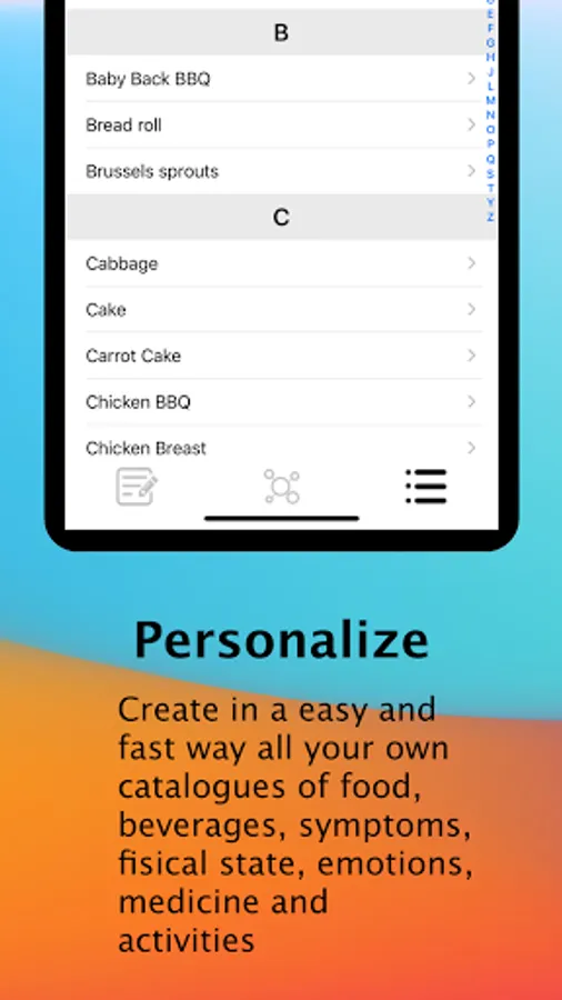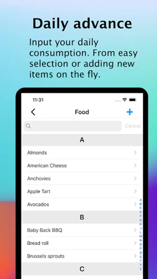 Simply input your daily food consumption and the integrated analysis shows you quickly how specific food and effect your health.