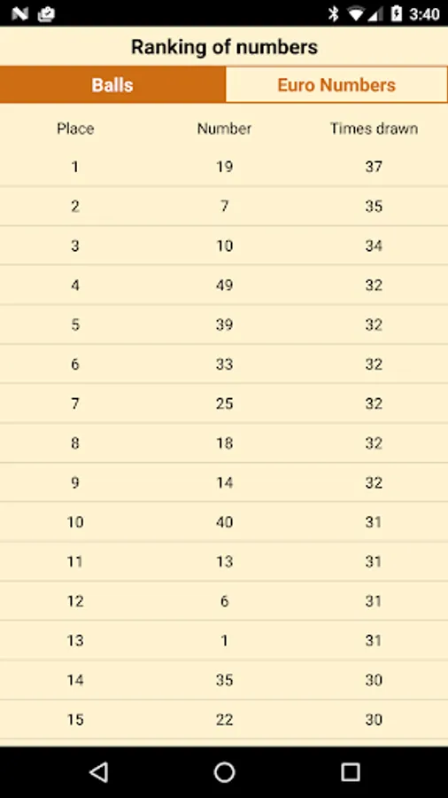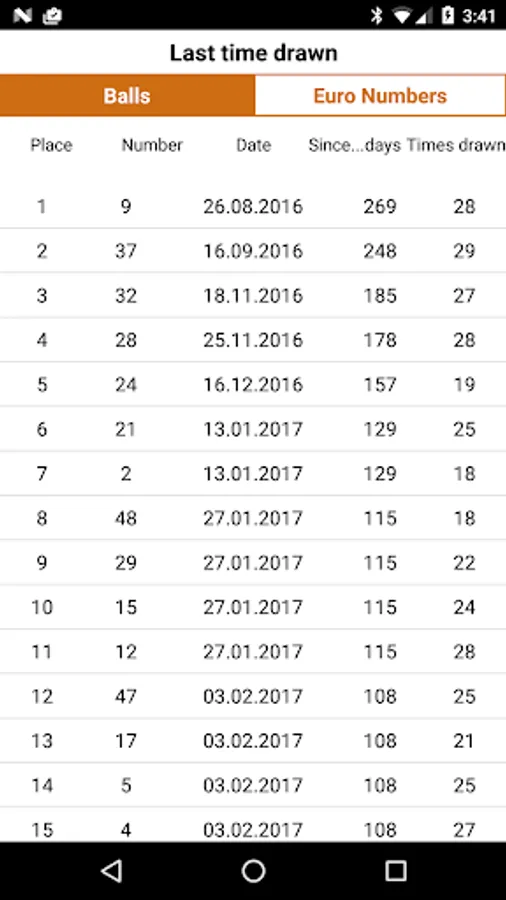 You can analyze the ranking of numbers, how many times a number was drawn and what is the most drawn number. Also see when was the last time a number was drawn.