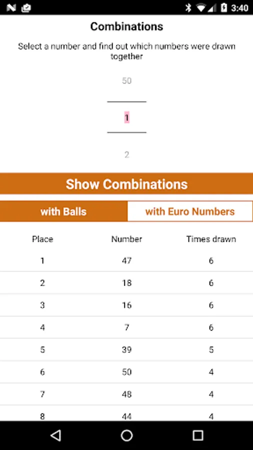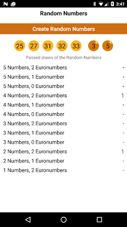 You can input your own numbers and see how many times this combination of numbers was drawn in the past.