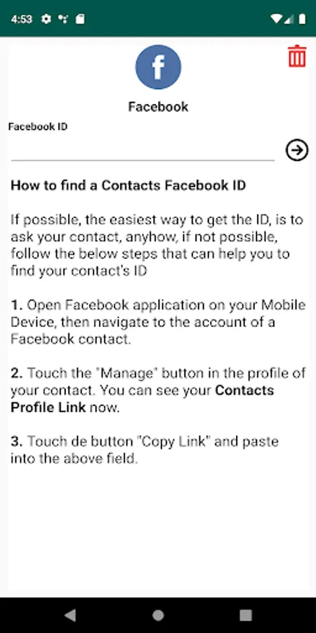 We include simple instructions on how to get the ID for a social network for a specific contact.