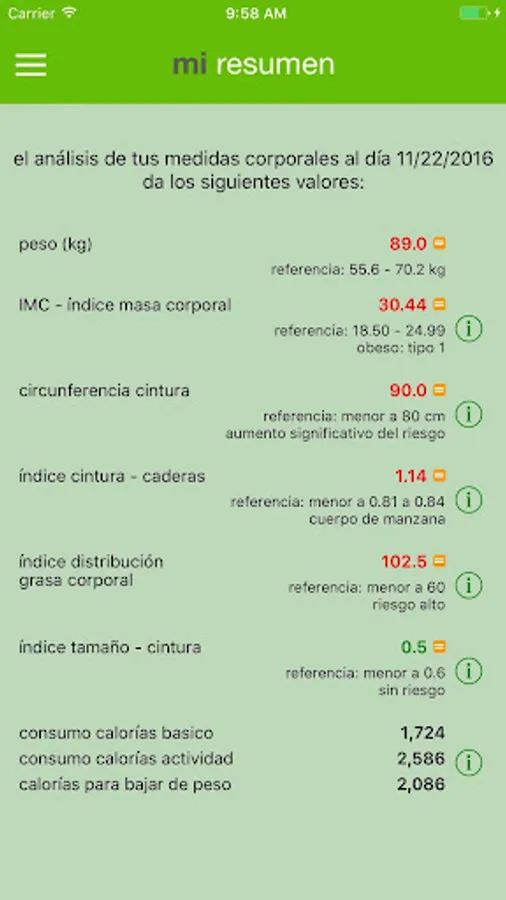 For my health, it calculates several indexes of your body measurements. This will give you a clear idea of the state of your body, it is more than a simple calculation of the body mass index. With each update of your body measurements, the indexes are recalculated, thus creating a detailed history of your body's improvements.