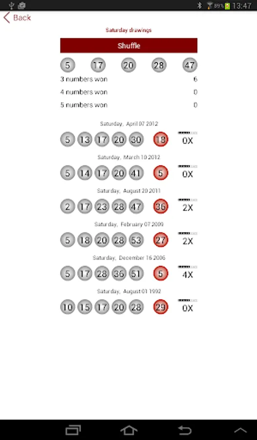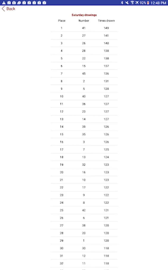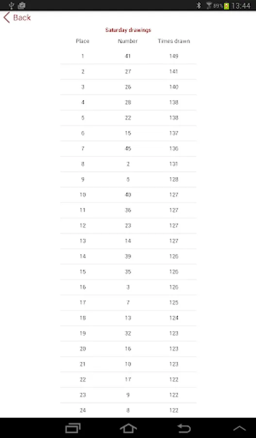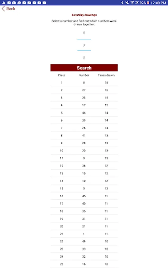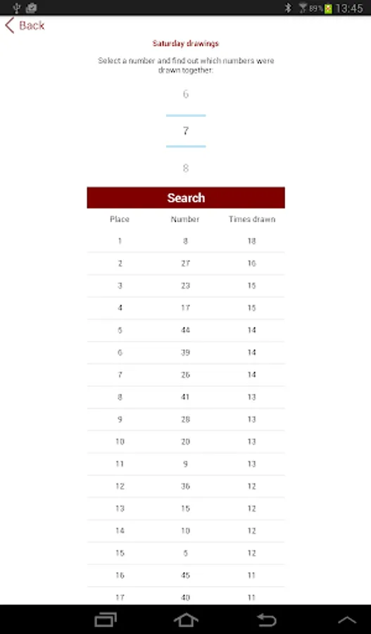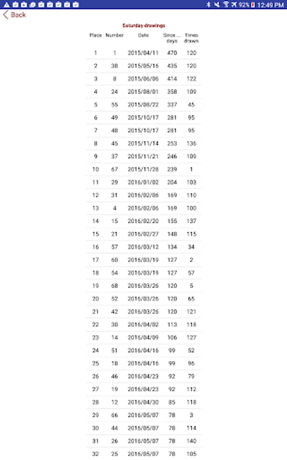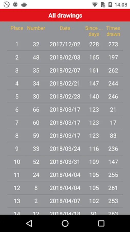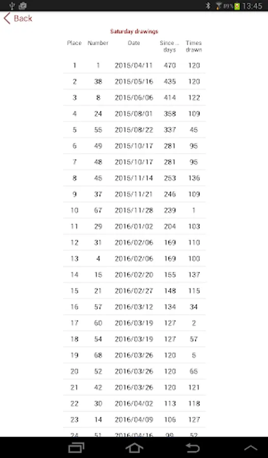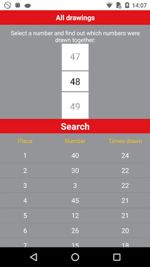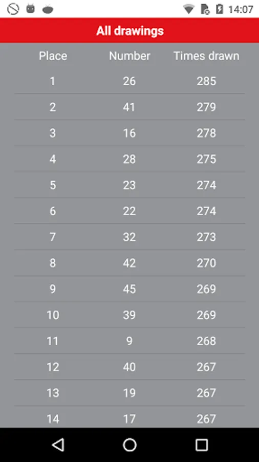 You can analyze the ranking of numbers, how many times a number was drawn and what is the most drawn number. Also see when was the last time a number was drawn.