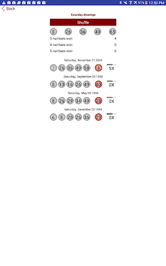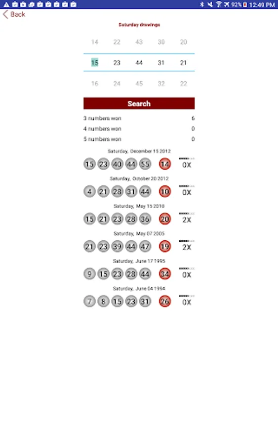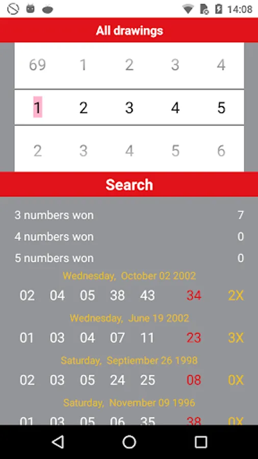 You can input your own numbers and see how many times this combination of numbers was drawn in the past.