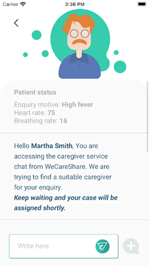 WeShareCare helps you monitor your state of wellbeing. WeShareCare connects you through a conversation with a caregiver, specialized or not, to do this monitoring. In the conversation they can ask you about your rest, nutrition and exercise, indicative values that will help caregivers to monitor you on your continuity care. Without an appointment you can connect to WeShareCare and start to perform ongoing care of your wellness status. We are not telemedicine, we do not make diagnoses, we only give suggestions to help improve people's state of wellbeing.