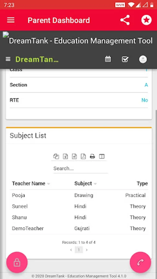 DreamTank Education Management tool helps Parents to perform(view) multiple operations.
