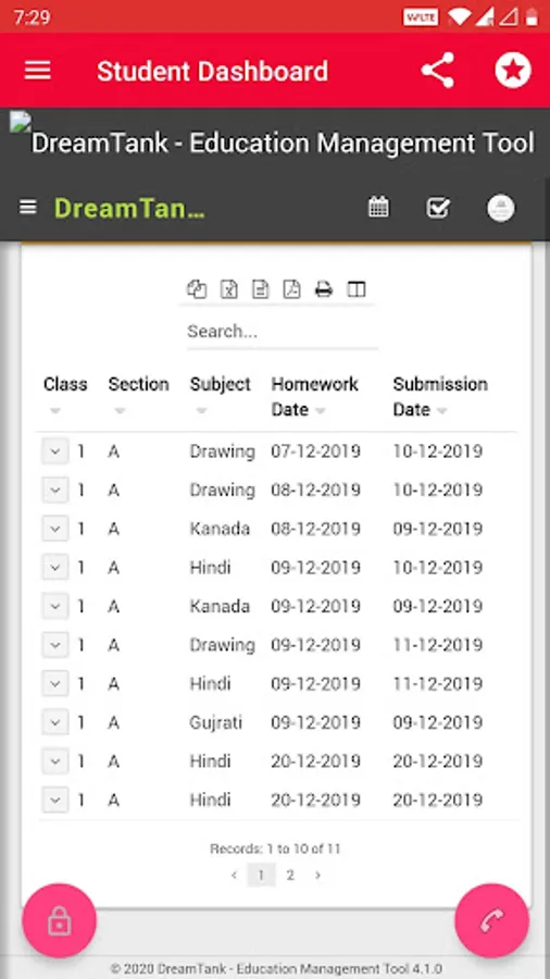 DreamTank Education Management tool helps Student(view)to perform multiple operations.