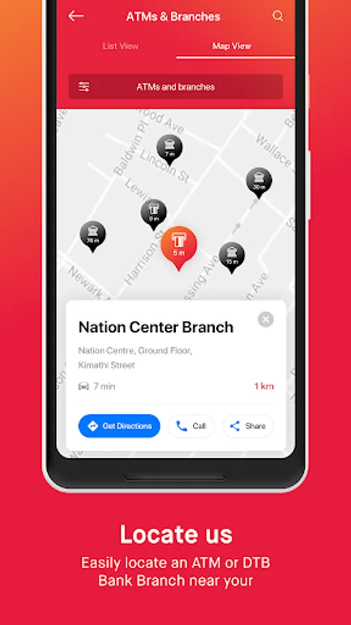 8. Locate all branch and ATM’s close to your current location.
