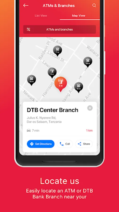 7. Locate all branch and ATM’s close to your current location.