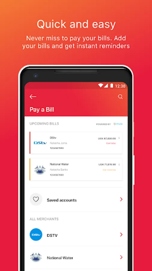 4. Access and select beneficiaries of mobile money transfer as well as airtime purchase from your phonebook.