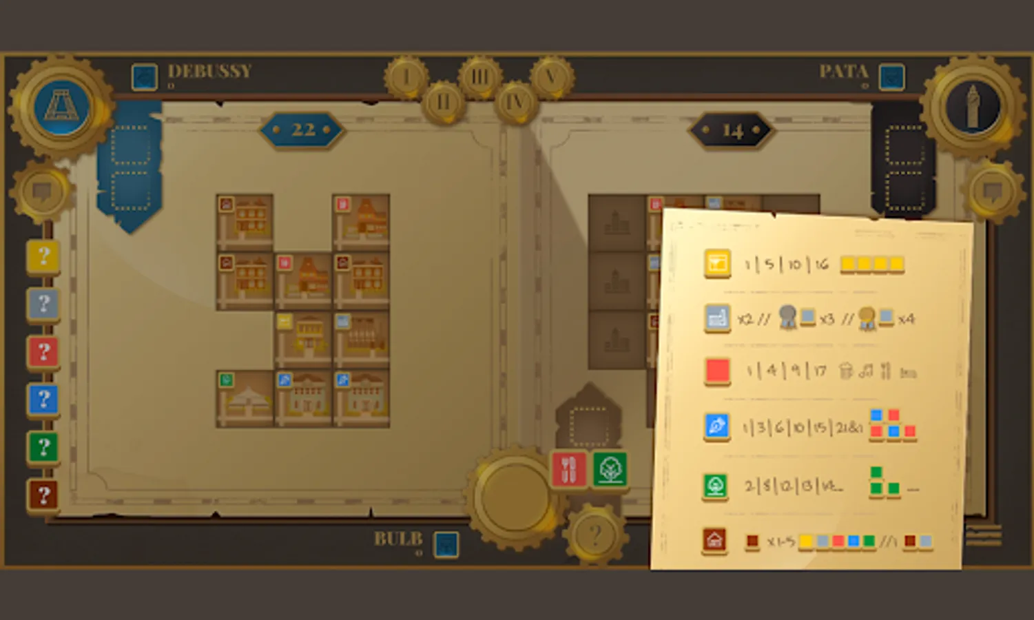 At the end of the game, each city is scored for its livability. Your final score is the lower of the livability scores of the two cities you helped design. To win, you have to share your attention and your devotion between two cities. The player with the highest final score wins the game.