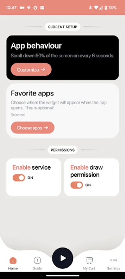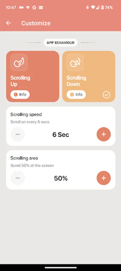 A simple tool that offers auto scroll over you screen, saving you time from manually scrolling down your favorite social media feed or reading a book. You get auto scroll tool with just one press of a button and without any ads!