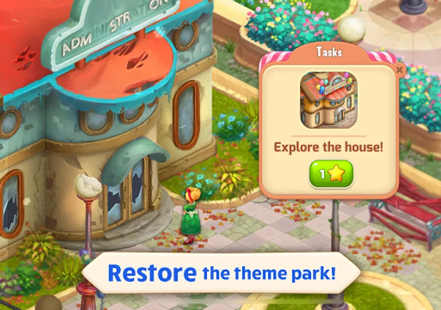 ● Rebuild the theme park: construct, customize, and design buildings, squares, carousels, and more.
