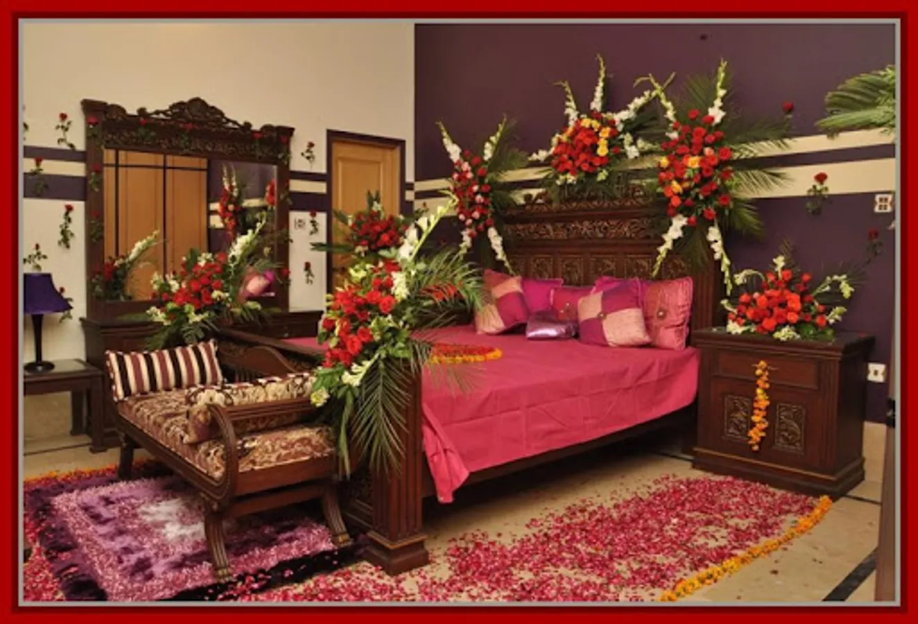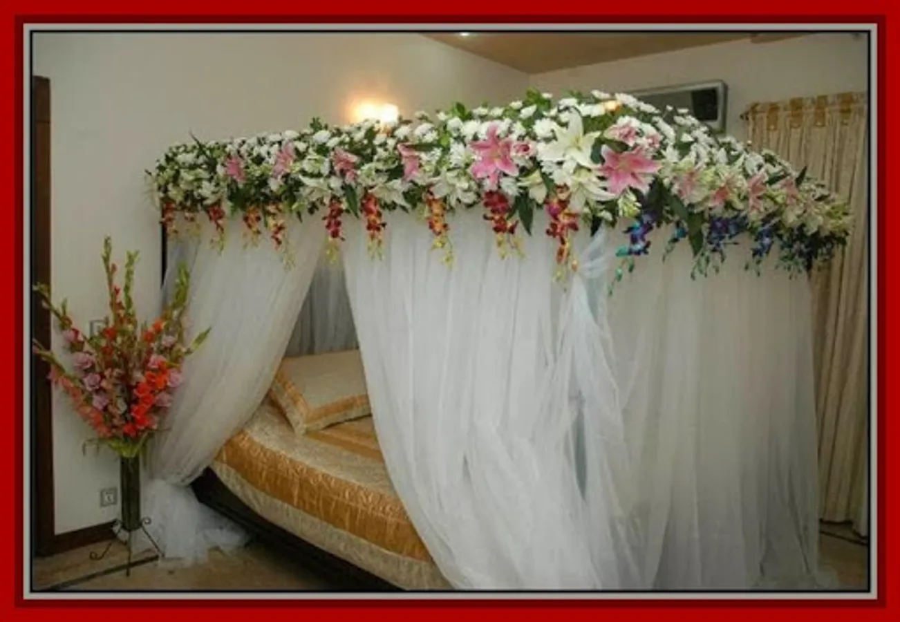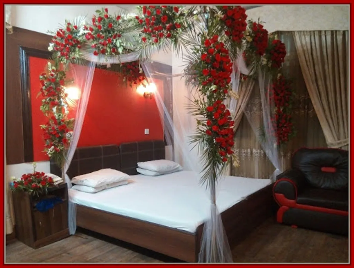 The most common arrangement is the floral bridal room arrangement. You can paste the flowers on the bedside, walls or place stunning bouquets on the table. Red roses are usually the flower of choice but lilies look great as well.