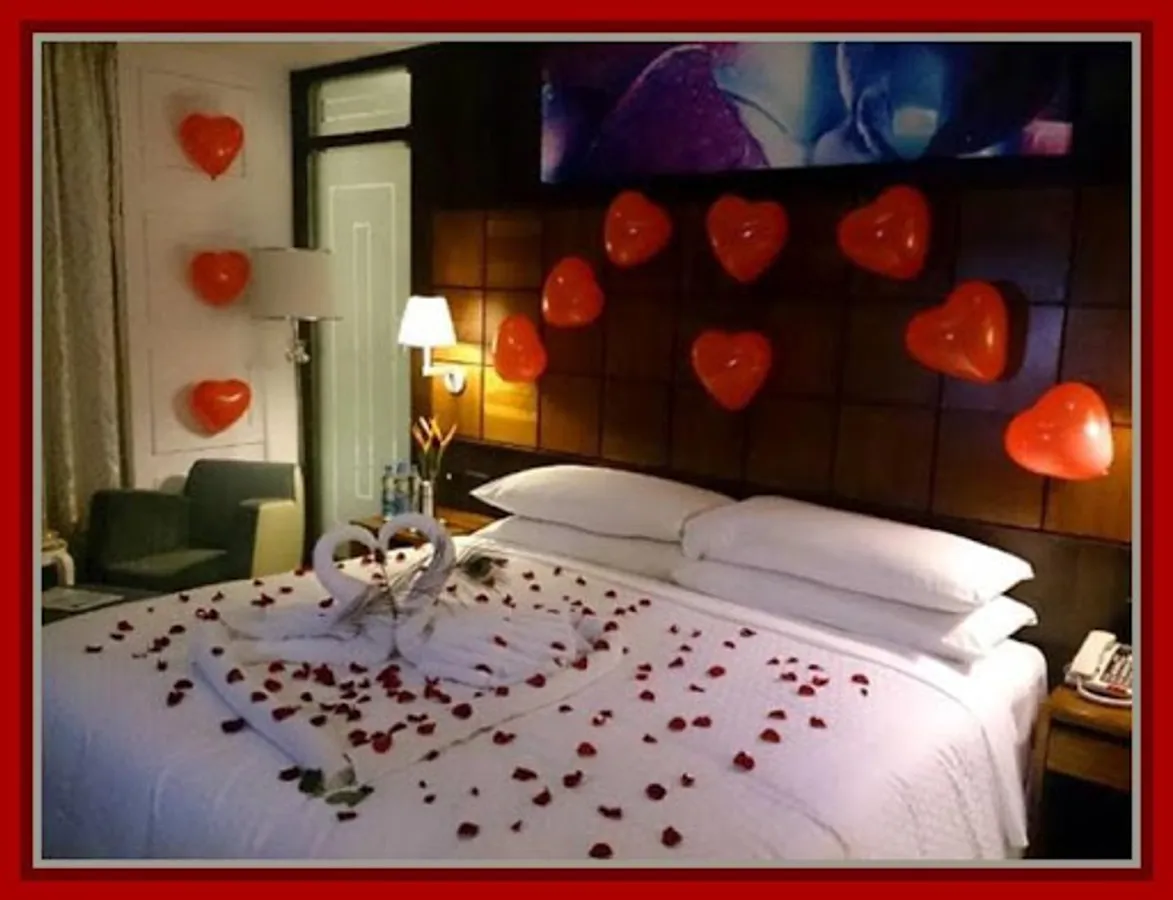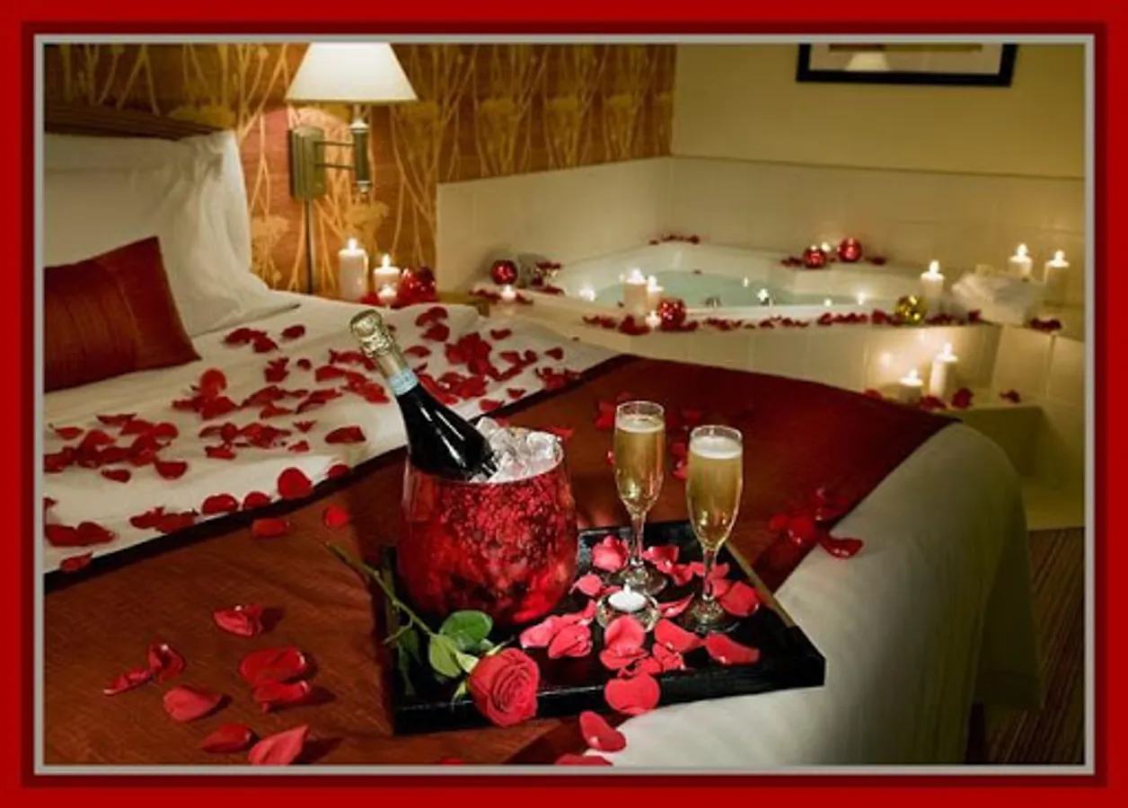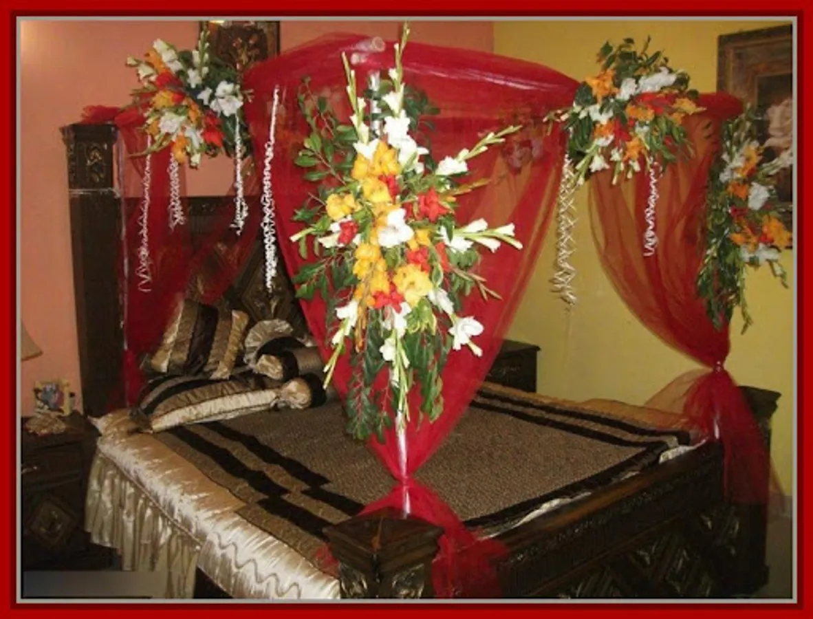 The most common arrangement is the floral bridal room arrangement. You can paste the flowers on the bedside, walls or place stunning bouquets on the table. Red roses are usually the flower of choice but lilies look great as well.