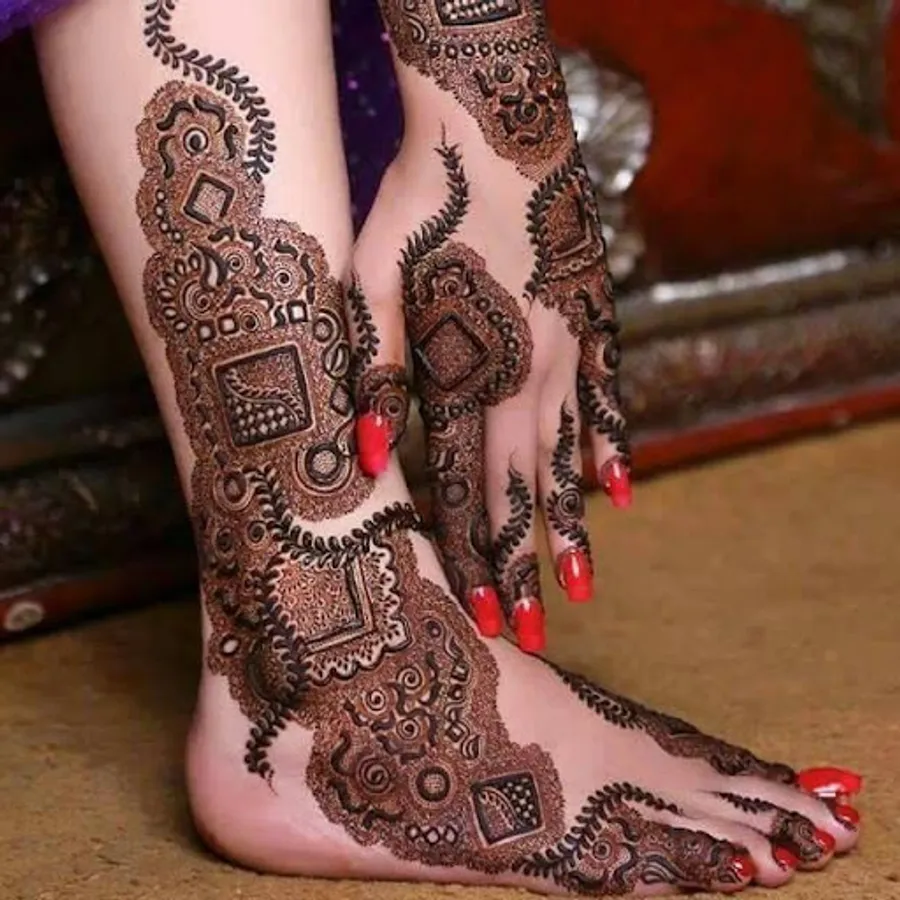 This mehndi design usually consists of different shapes. Squares, boxes, and multiple dot designs are very common.