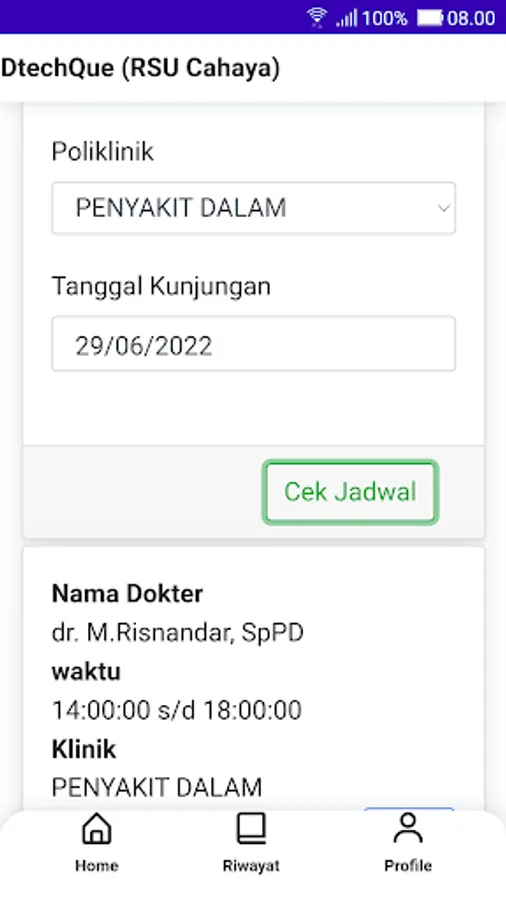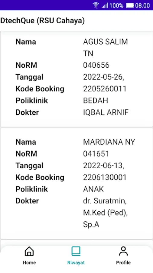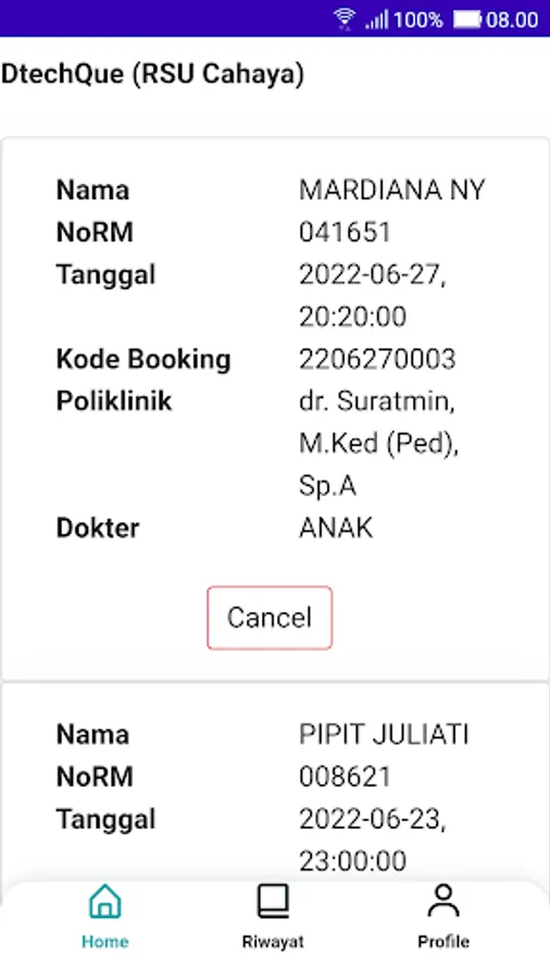 Application to make it easier for patients to register at Cahaya Ujung Tanjung Hospital.