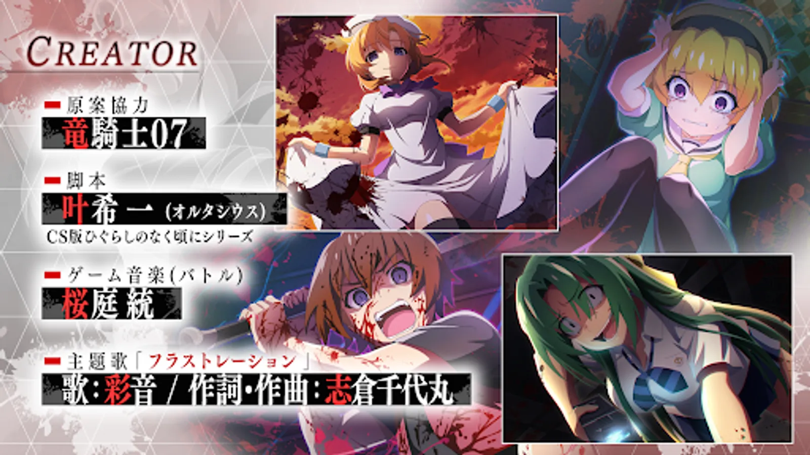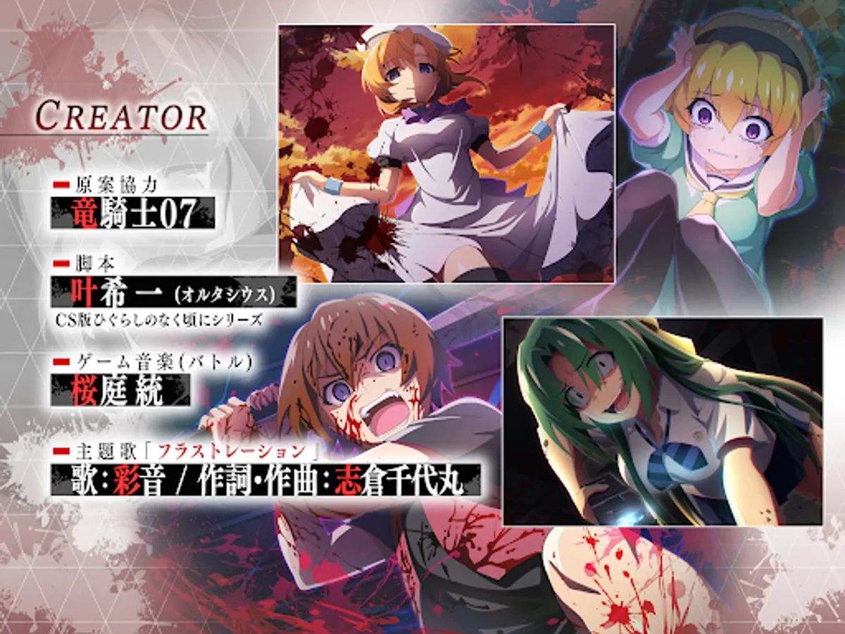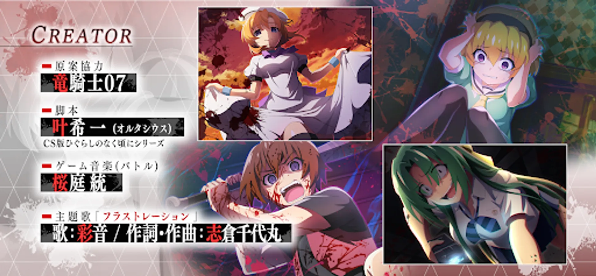A game app for smartphones based on "Higurashi When They Cry", a popular work by Ryukishi07.