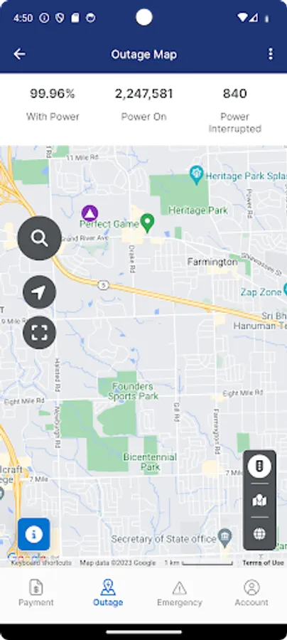 - See what areas have outages and how many customers are affected