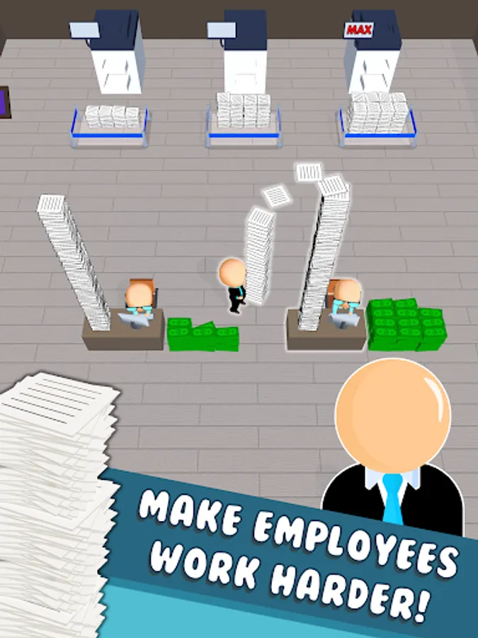 Once you collect enough money, you will grow your team, stack more papers, upgrade your printers and