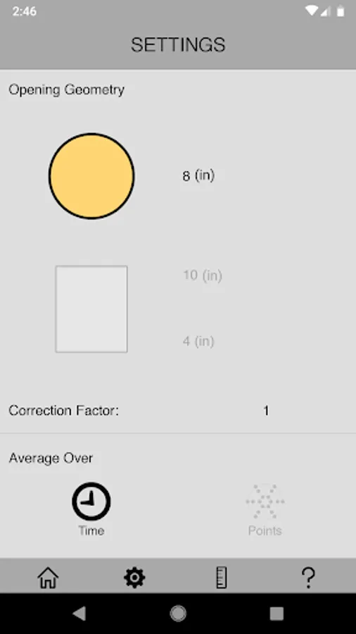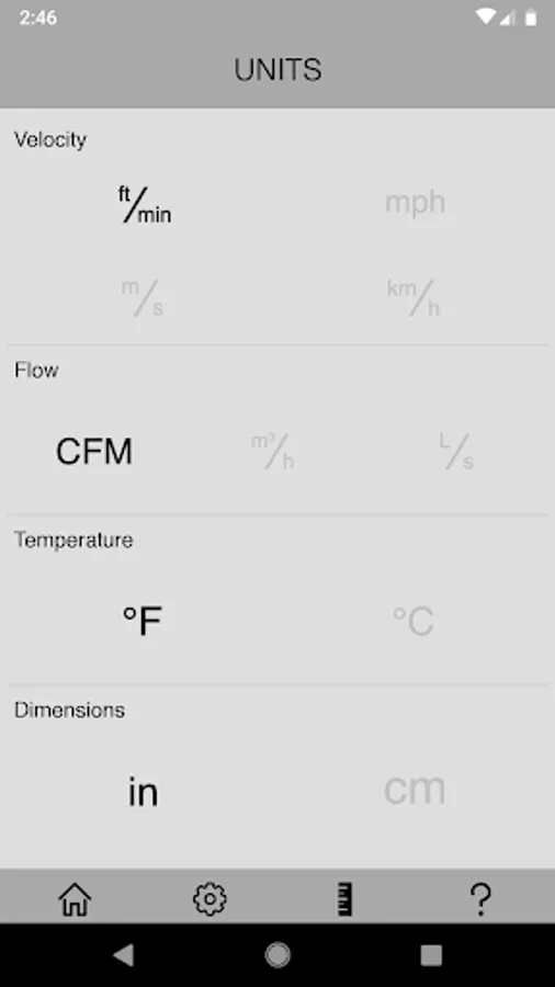 The app allows you to adjust for Round or Rectangular Ducting (in or cm) as well as take