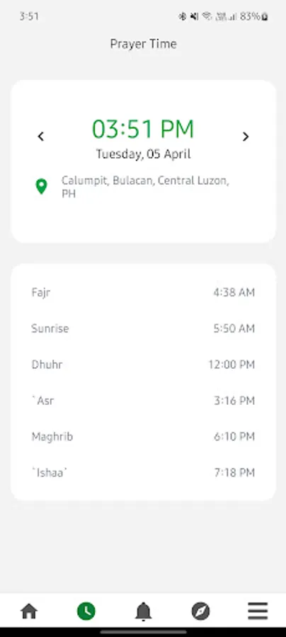 D. Prayer Schedules - Fajr, Dhuhr, `Asr, Maghrib and `Ishaa` prayer.