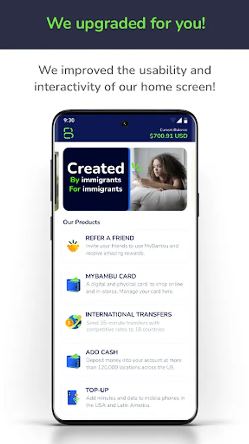MyBambu is a mobile application that offers an array of financial solutions to provide convenient, reliable and affordable services to everyone, regardless of their immigration status-No SSN needed. Our services include, international money transfers, domestic and international bill payment, domestic and international phone top-up, peer to peer transfers and more.