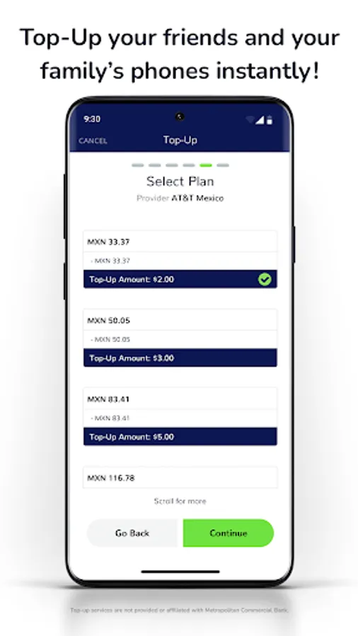 -Add Money, Bill Pay, Gift Cards, International Money Transfers, International Bill Pay, and Top-up, services are not provided or affiliated with Metropolitan Commercial Bank.