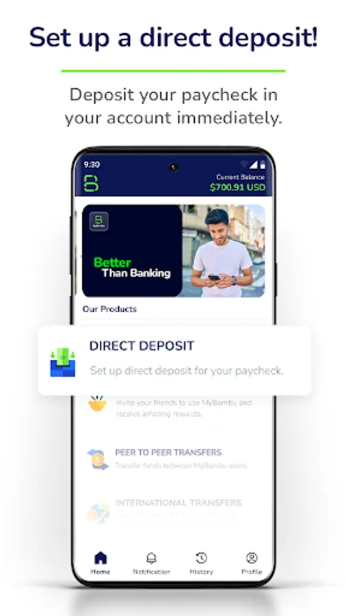 MyBambu users can send money to or request money from other users at no cost instantly.