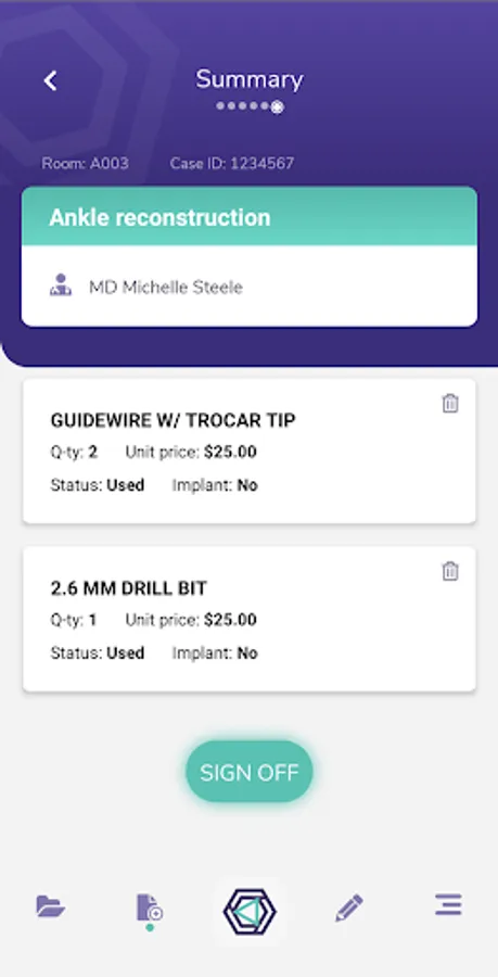 3. Show the app's Summary Screen with the list of all the products scanned during the procedure to the member of the medical staff in charge of reviewing them