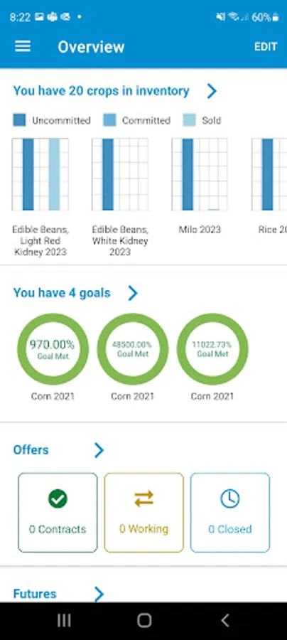 • Offers – Initiate and complete grain sales with minimal data entry and authentication hassles. Use the call capability to have your buyer enter your offer and push the transaction to the app for your confirmation.