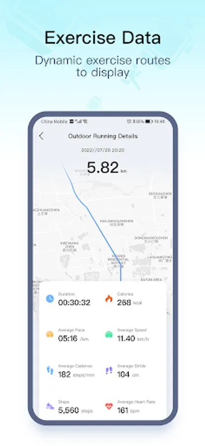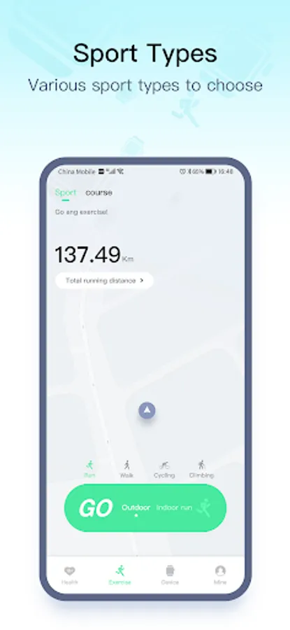 3. Record GPS sports, support running, cycling, walking and climbing sports, support background operation, can record exercise time, exercise distance, pace, cadence, step count and other data.