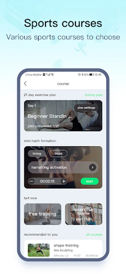1. A mobile application with message reminders, alarm clocks, sedentary/drinking reminders, exercise step counting, calories, etc., and provides 24-hour exercise monitoring and health services.