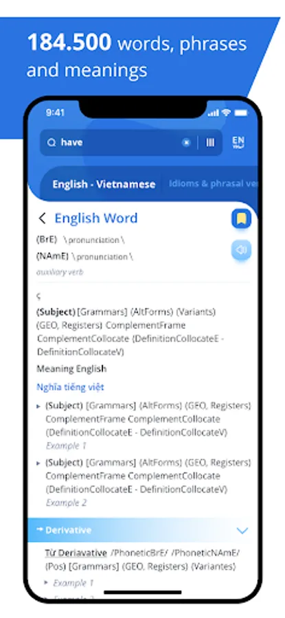 ELVD dictionary is a perfect English - Vietnamese dictionary with advanced search functions and native English pronunciation.