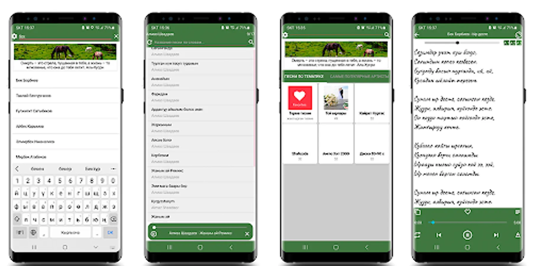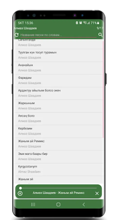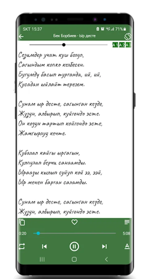 In this application you can find the lyrics of Kyrgyz pop music and songs. You can also listen to which songs you like. And add as many as you like to the favorites list