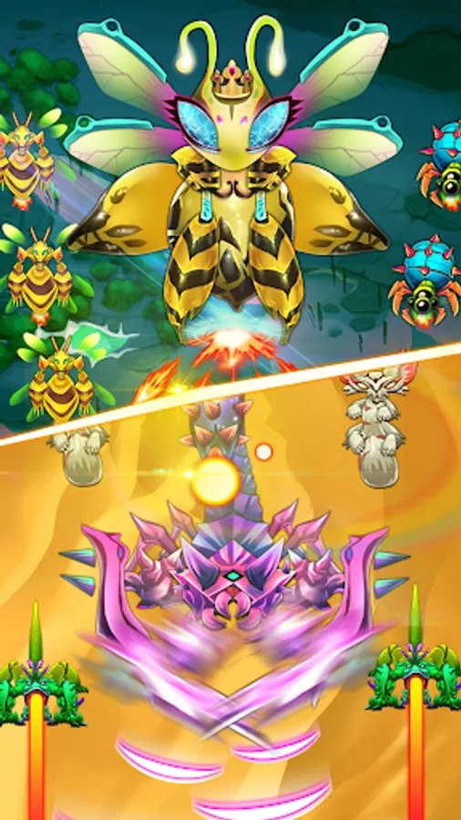 It is most exciting thing that challenge the boss, firepower was concentrated, and with different bullet barrage to attack you, only touch screen to avoid and shoot. Skilled operation is very important, protect your spaceship safe and accumulate damage. It is not only a sky shooting game, but also take your more happiness about life leisure time