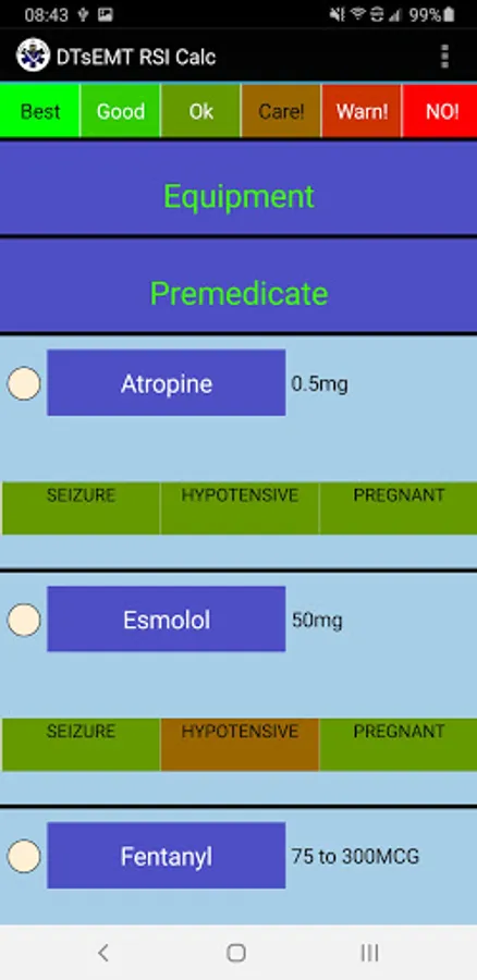 Quick reference for RSI drug selection based on patient category and pre-existing conditions.
