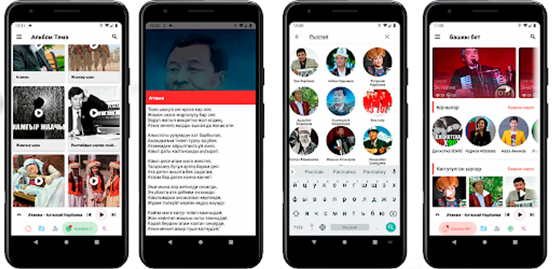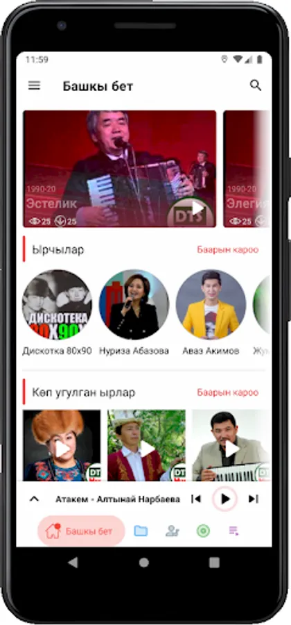 You can listen to the songs of ancient singers and performers who are popular in Kyrgyzstan. Also, if you suggest any singer or song, we will review it and try to include it as soon as possible.