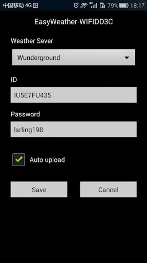 Through this application Setting the device to upload account,the device can upload weather data.
