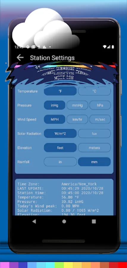 The app stream live, real-time, data from the weather station through internet. It show information like temperature, humidity, rainfall.