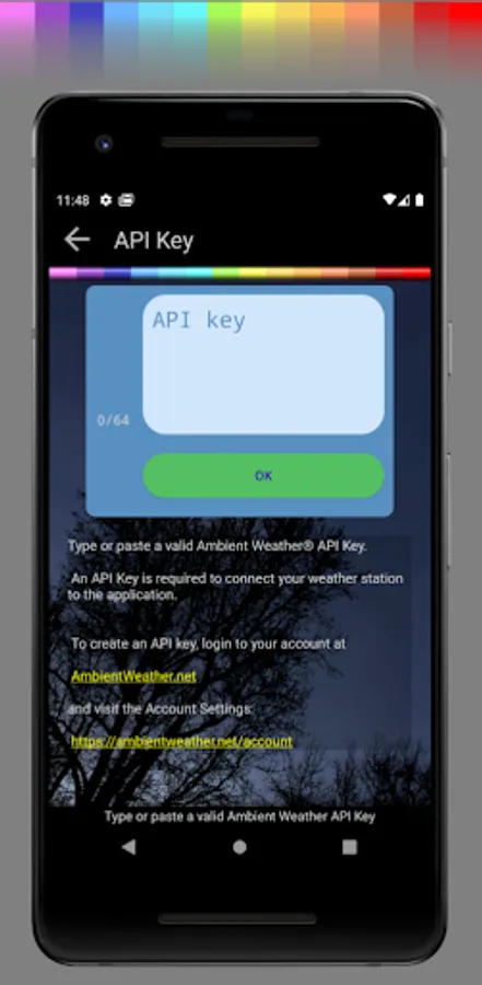The AW-Dash App requires the access to an Ambient Weather Station reporting data to AmbientWeather.net.
