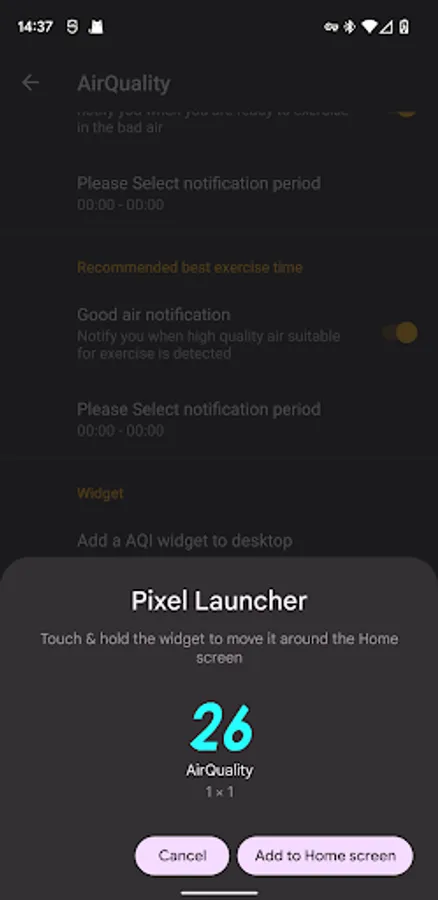 This will display the air quality index detected by the nearest monitoring station. And follow your record of the AQI history of your environment, so that you can more intuitively understand the quality of the air you are exposed to every day. Please cherish your health.A reminder to suggest outdoor sports when high quality air is detected. When the air quality is poor or very poor, it is recommended not to go out if a warning is detected if the user's motion is detected.