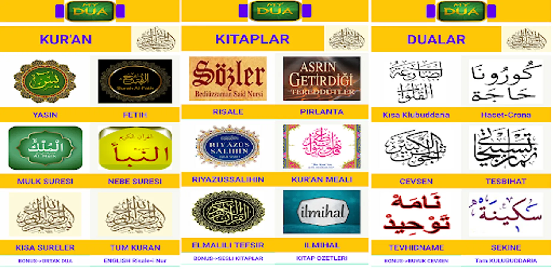You will find prayers, Risale-i Nur, Quran, cevsen, audio books, book summaries, diamond series, hadiths, great cevsen all and more in this application. You can save the page you left behind in your Quran hatim follow-ups and then continue from the same device or other devices.
