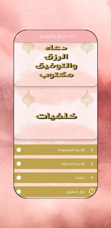 The application of the supplications of livelihood and success: without the net contains many images of supplications, wallpapers, written supplications and audible supplications