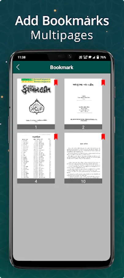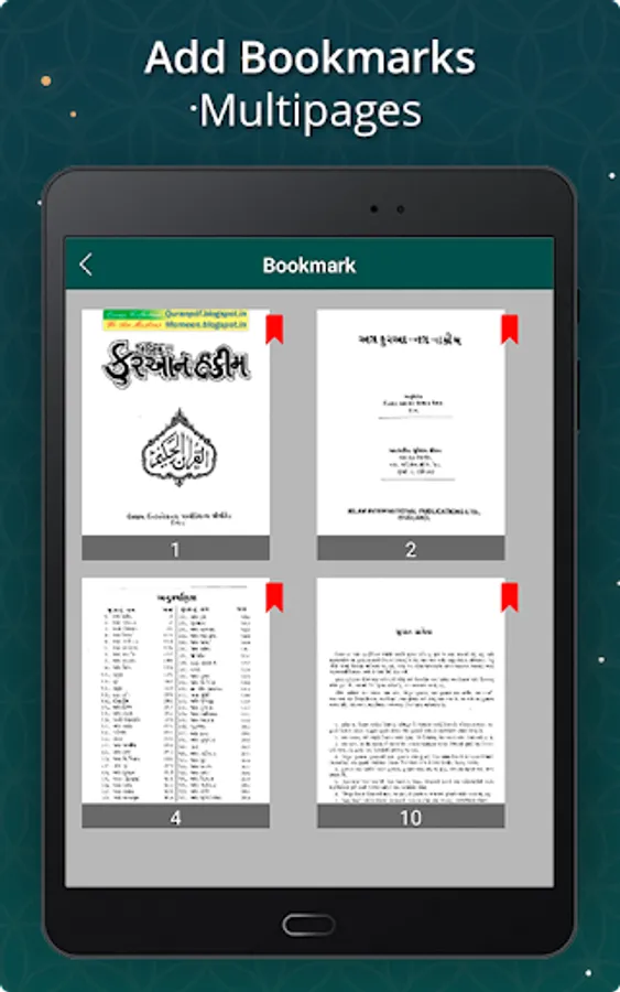 - In Gujarati Quran Majid you can add bookmark any page and continue reading from where you left, from bookmark list.
